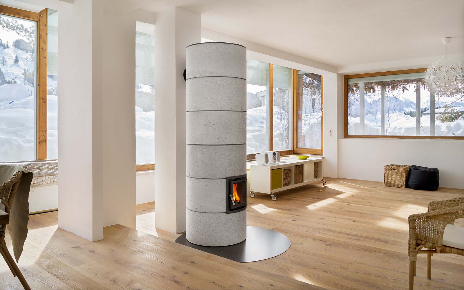 Durch das modulare System aus Speicherringen sind unsere Öfen besonders flexibel. Über die Höhe kann das Modell einfach an den individuellen Wärmebedarf angepasst werden. Der Durchmesser des Ofens bleibt dabei gleich. Das heißt: