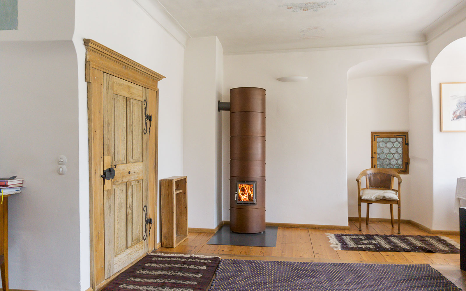 - Die Strahlungswärme wird auf Höhe des Ofens (und der Bewohner*innen) abgegeben.