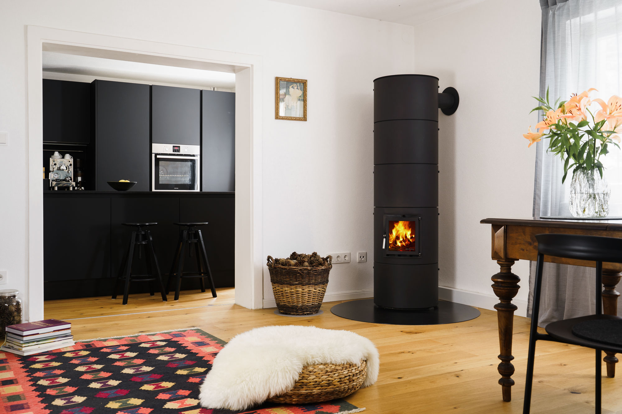 Kleinspeicherofen rondolino kombiniert Kaminofen und Grundofen